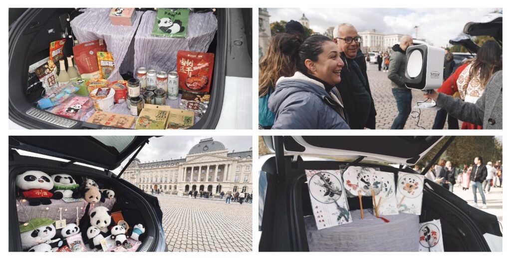 Le 26 octobre, le marché vide-coffre du panda a pris place sur la Place de la fontaine Bruker, en Belgique, contrastant magnifiquement avec des bâtiments emblématiques tels que l’Atomium et l’Hôtel de Ville. Les expositions présentées sur place poursuivent la combinaison « culture + technologie » et, grâce à l’« expérience immersive », le site est devenu un lieu de détente populaire pour les habitants le week-end.